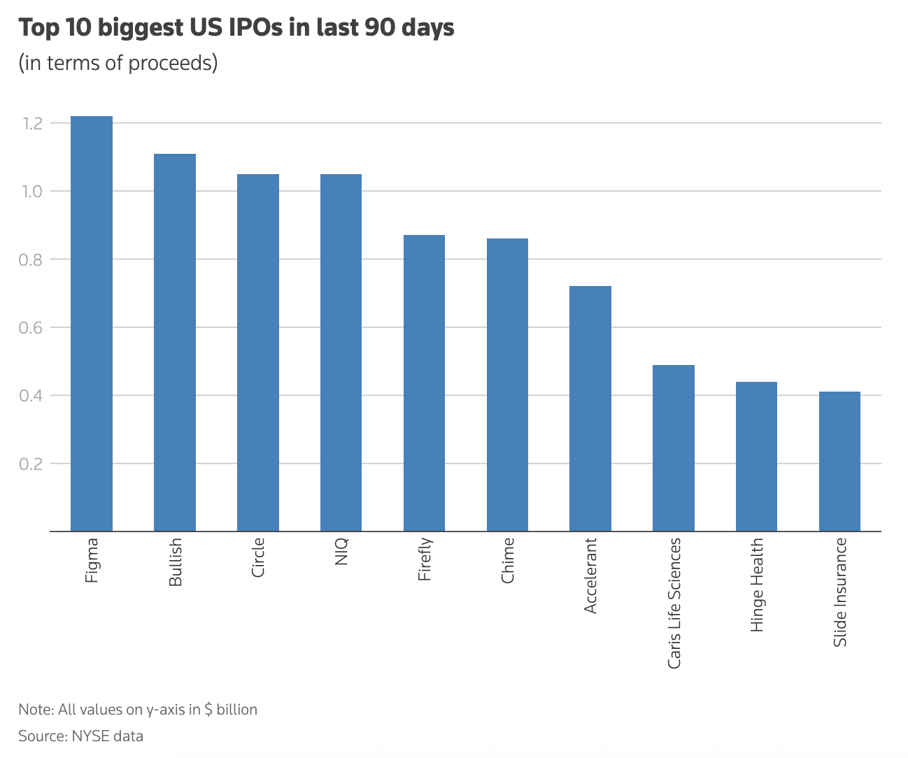 Dos 10 maiores IPOs de 2025, 2 são de empresas cripto: Bullish e Circle.