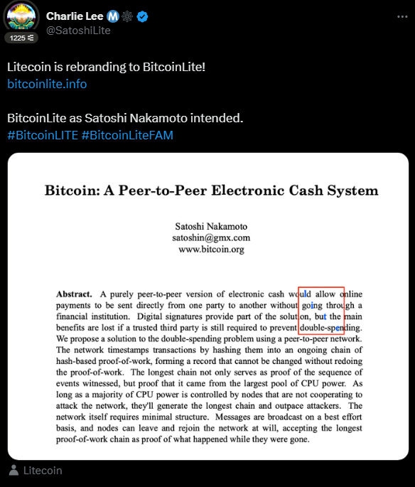 Charlie Lee, criador do Litecoin, brincou que a moeda seria rebatizada para BitcoinLite.