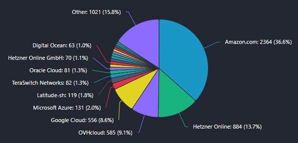 Cerca 36,6% dos nós que mantém a rede operante dependem do AWS, ou seja, eles também apresentaram instabilidade ontem.