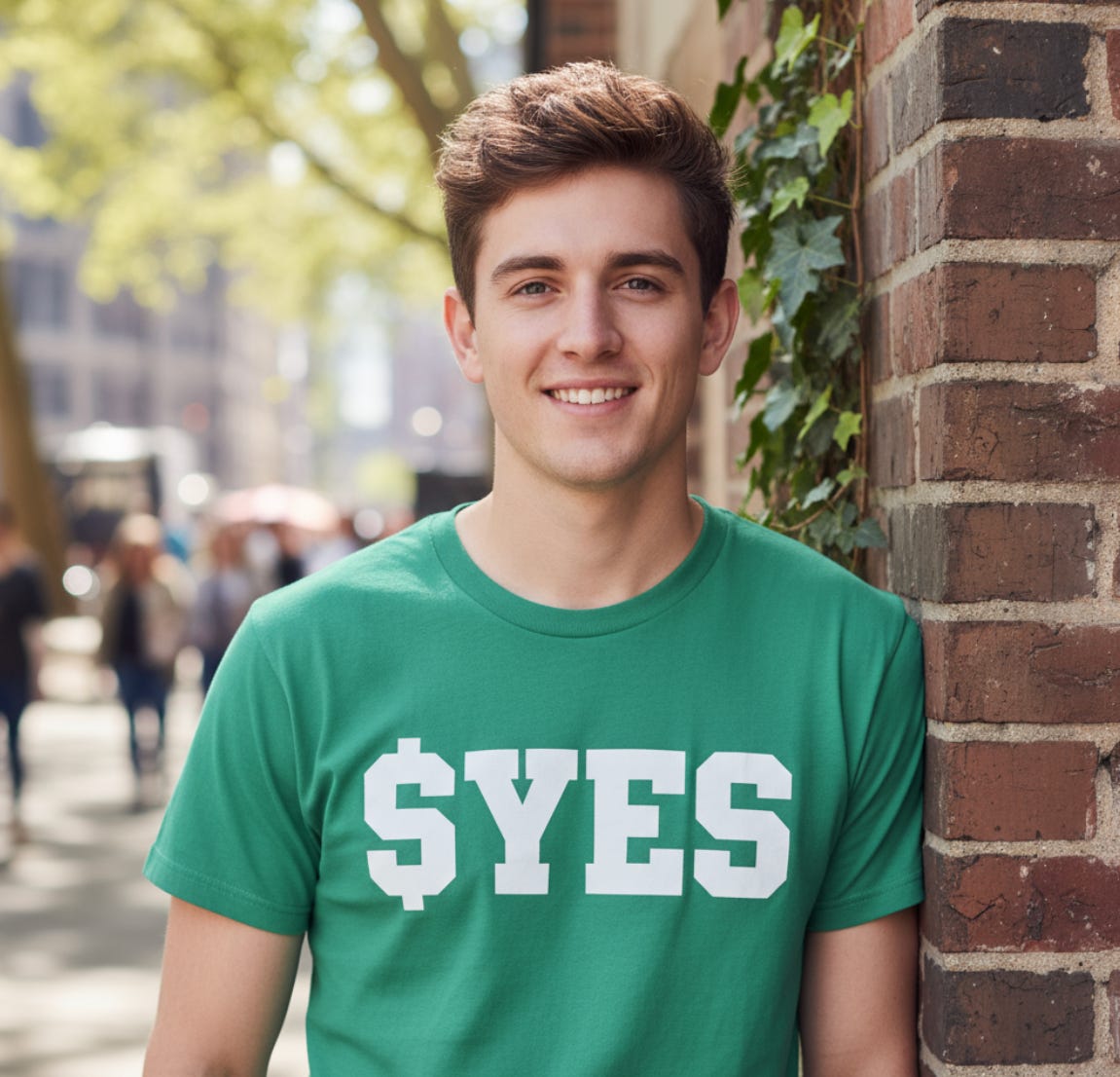 “por que esse cara tá usando uma camisa com $YES?”