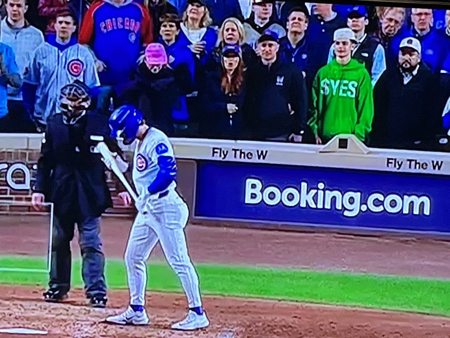 Comprou um ingresso VIP para um jogo da MLB, liga de Baseball americana. Seu objetivo: garantir um lugar que apareceria em destaque nas câmeras. Chegando lá, vestiu uma camiseta verde com a palavra “$YES” em letras garrafais.
