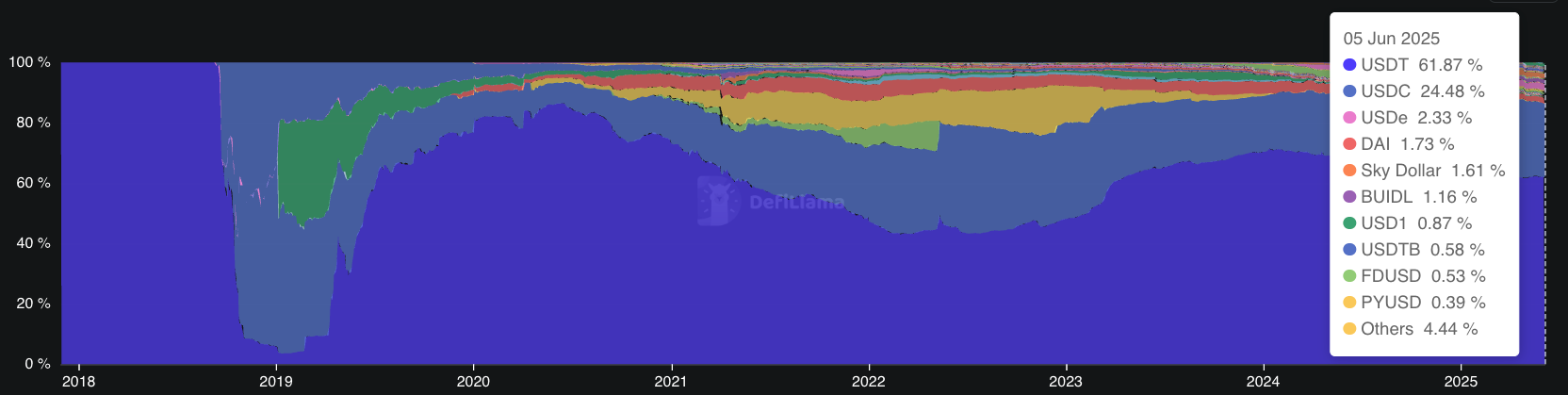 Desde a eleição do Trump, a USDC vem ganhando espaço no seu setor. A USDT, principal stablecoin, perdeu ~5% de marketshare para sua principal competidora.