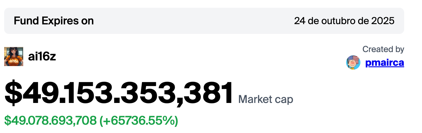 Isso foi suficiente para fazer o $AI16Z, token do fundo, valorizar 2.400% em 12 horas. A capitalização de mercado do fundo chegou a U$100M.
