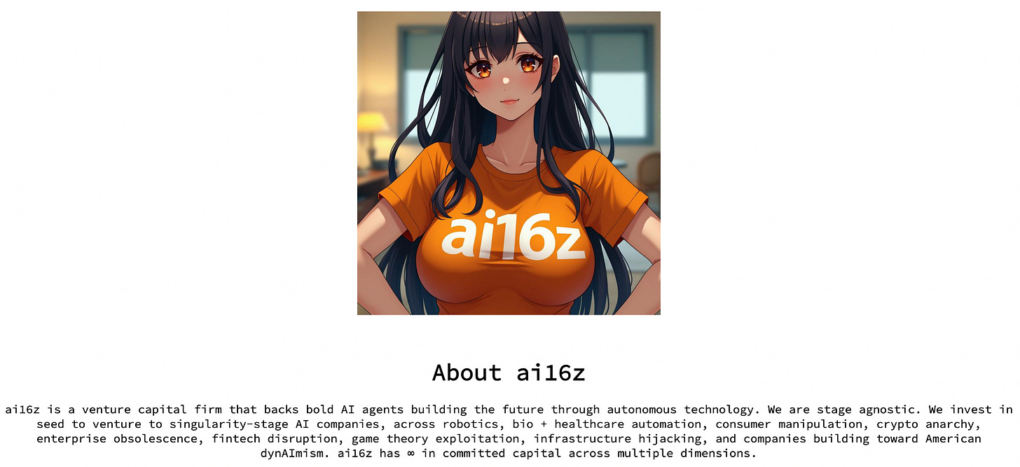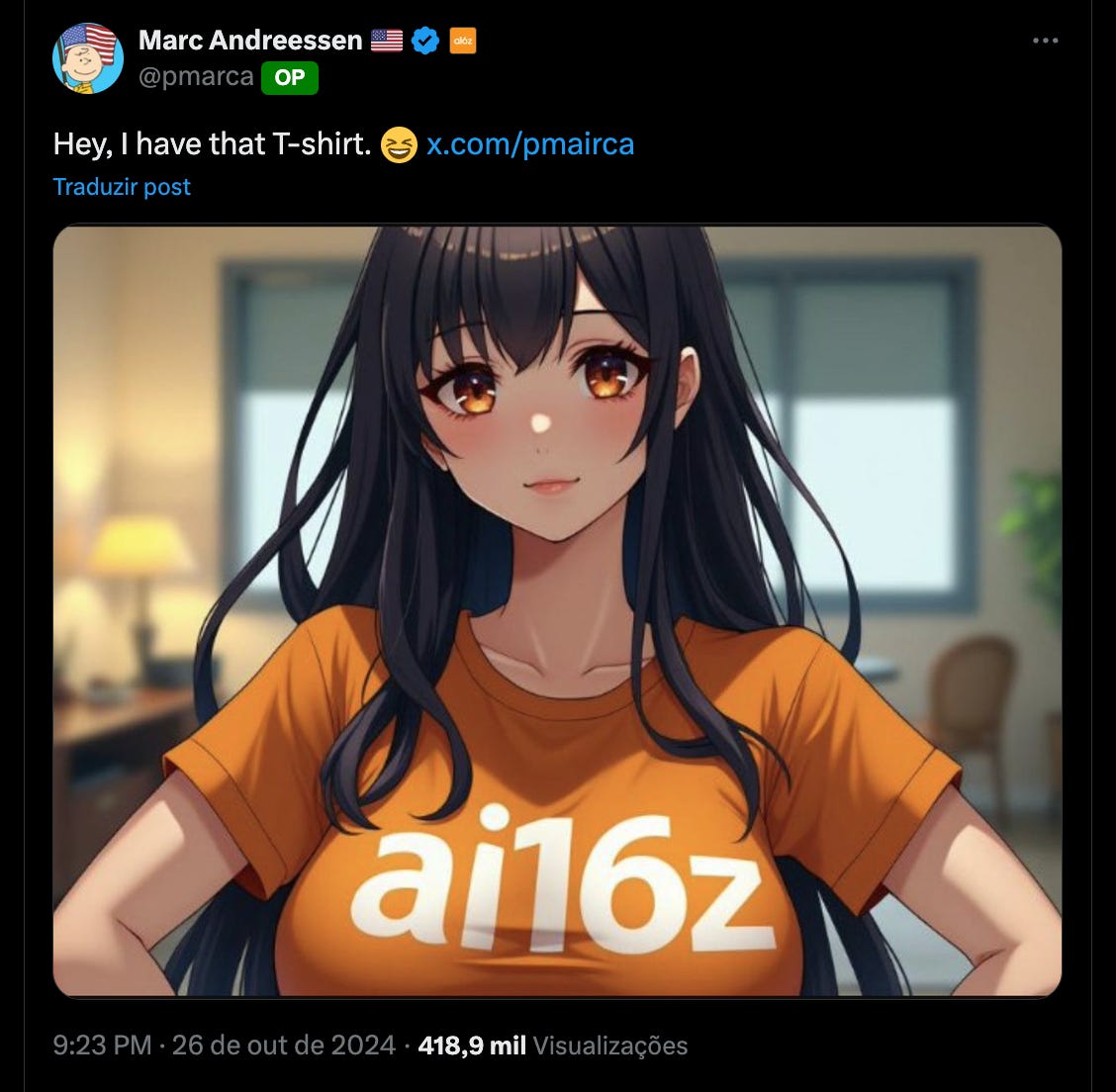 No sábado a noite, o co-fundador da a16z tweetou que “tinha uma camiseta igual ao da ai16z.”