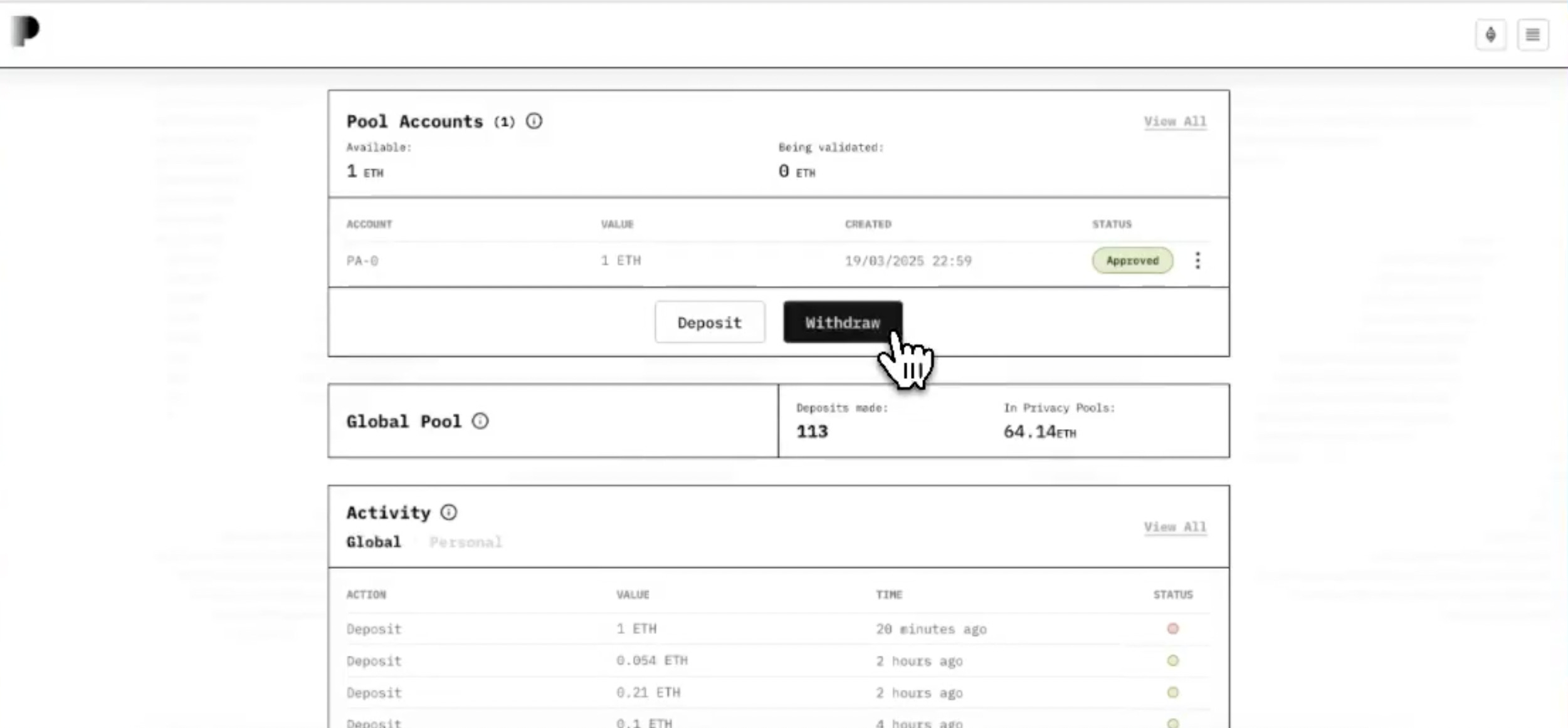 O depósito é aprovado, e é possível sacar seu ETH para outro endereço.