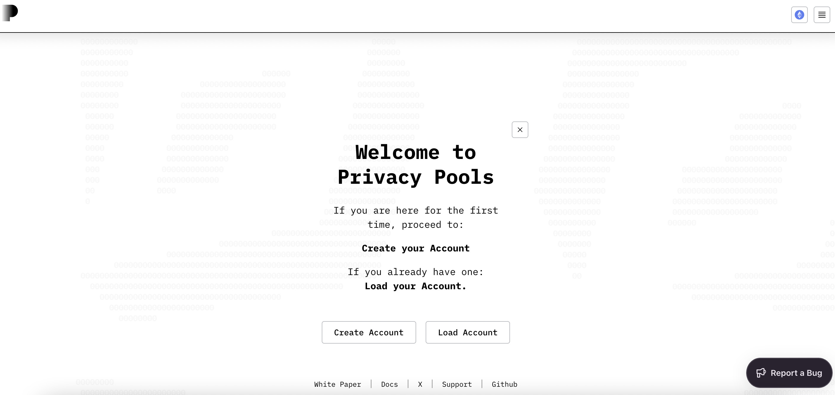 Para utilizar o Privacy Pools, é preciso criar uma conta/carteira na plataforma.