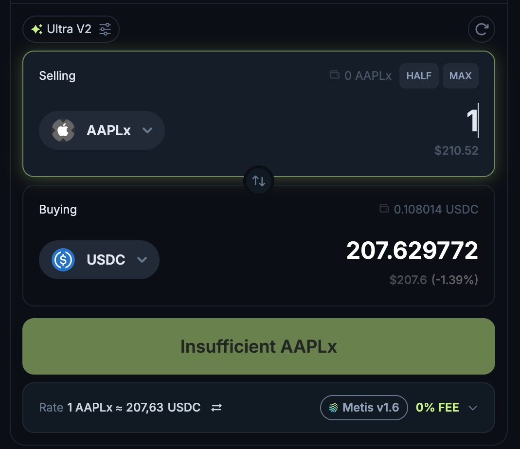 Para negociá-lo, basta copiá-lo na página oficial e colar numa corretora descentralizada na rede. Na imagem cima, copiamos o endereço do contrato da ação tokenizada da Apple ($AAPL) e colamos na Jupiter.