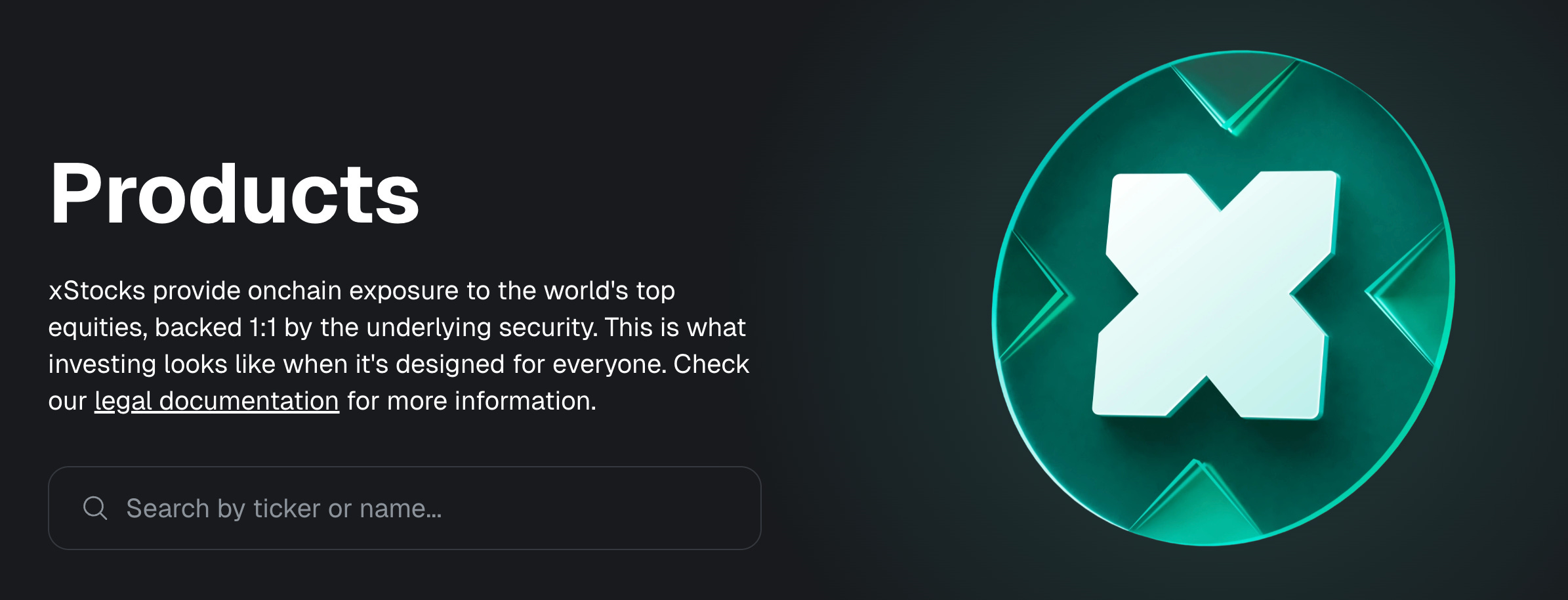 Através das xStocks, oferecem mais de 60 opções de ações/indices tokenizados.