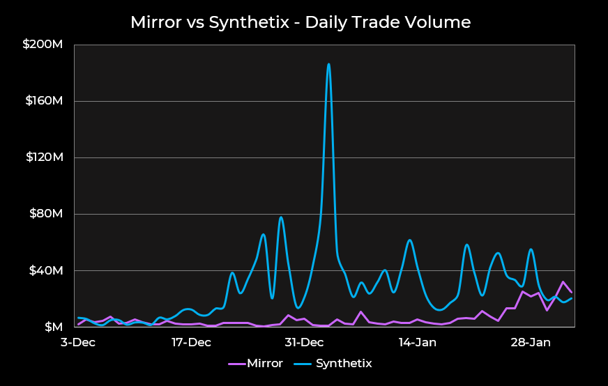 Mirror Finance e Synthetix eram líderes neste mercado, no último ciclo.
