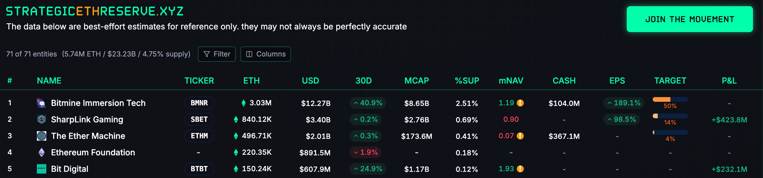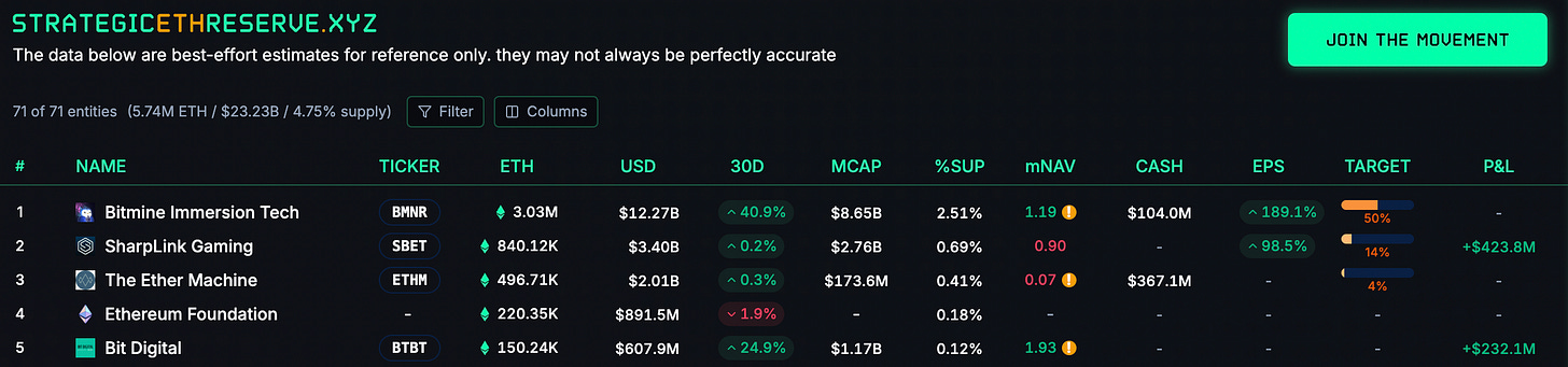 O grupo busca adquirir uma empresa listada na Nasdaq e usá-la como uma “máquina de comprar ETH”. A meta da aquisição é U$1B em ETH. Caso seja concretizado, a empresa se tornaria a quarta maior Ethereum Treasury Company do mercado. Teria mais ETH que a Ethereum Foundation.