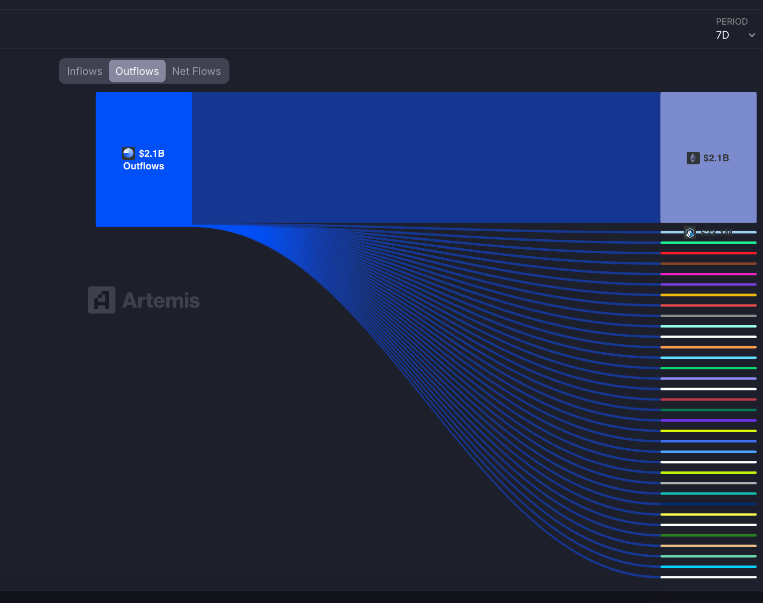Já em Top Outflows, a Base figura no primeiro lugar, ou seja, foi a rede de onde mais saiu mais dinheiro na última semana: U$2.1B. Pra onde será que todo este dinheiro está indo?
