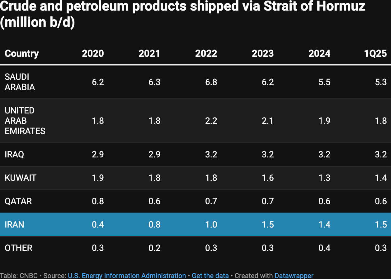 Existe o temor do Irã fechar o Estreito de Hormuz, um canal por onde passam navios com bilhões de dólares em petróleo. Só em 2025, 1.5M de barris de petróleo passaram pelo local.