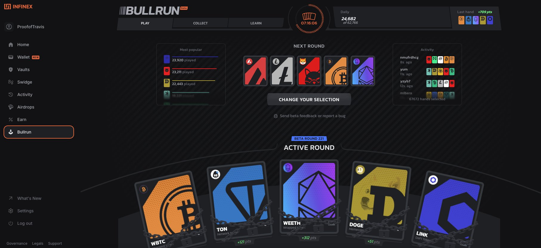 Vale lembrar, a Infinex é uma plataforma já estabelecida, mas extremamente nova - assim como o Bull Run. Pode ser uma forma de farmar um airdrop, se divertir e estudar mais com gerenciar um bom portfólio - só que com cartas de um baralho virtual.