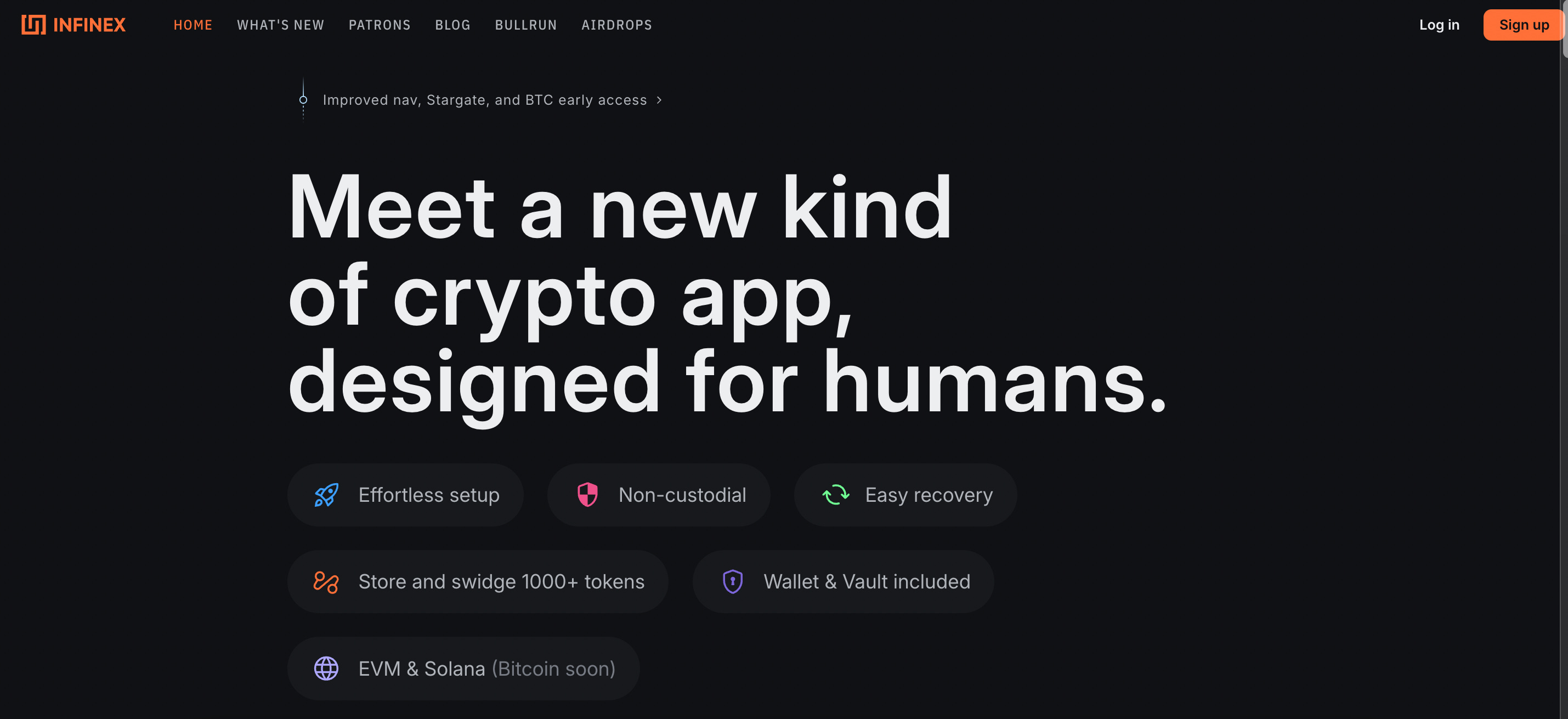 Sob o argumento de melhorar a experiência dos usuários em DeFi, a Infinex permite você criar uma conta com suas redes sociais e até colocar uma forma de recuperação dos seus ativos.