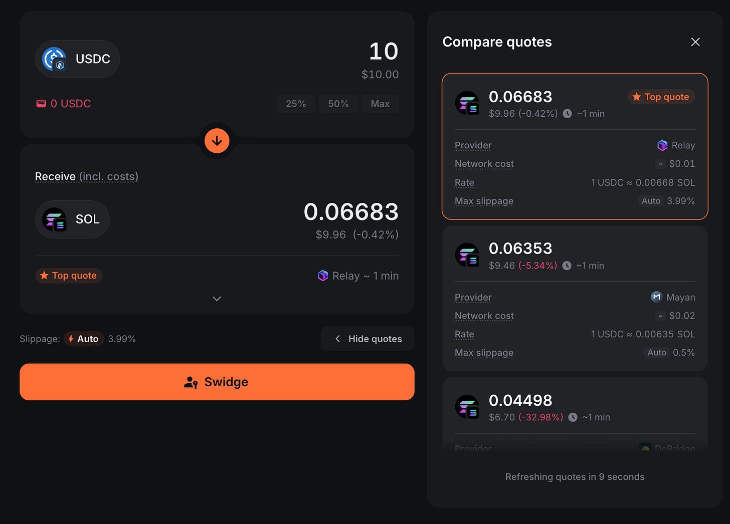 Outro produto muito elogiado da Infinex é o Swidge: um agregador de pontes da plataforma.