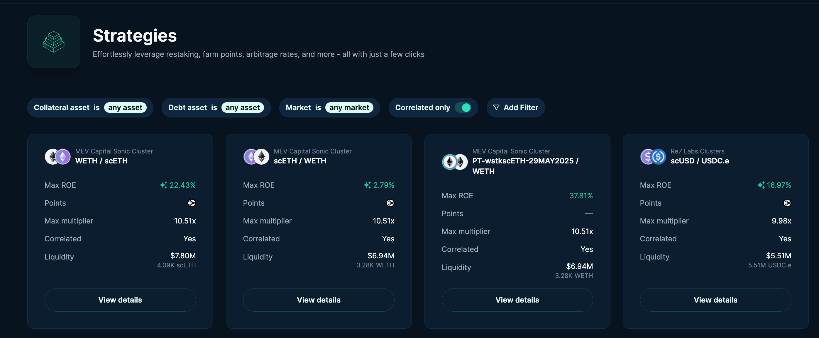 Acima, estamos no mercado de empréstimo de USDC.e/scUSD, na Sonic. Duas stablecoins, emitidas por 2 empresas diferentes.