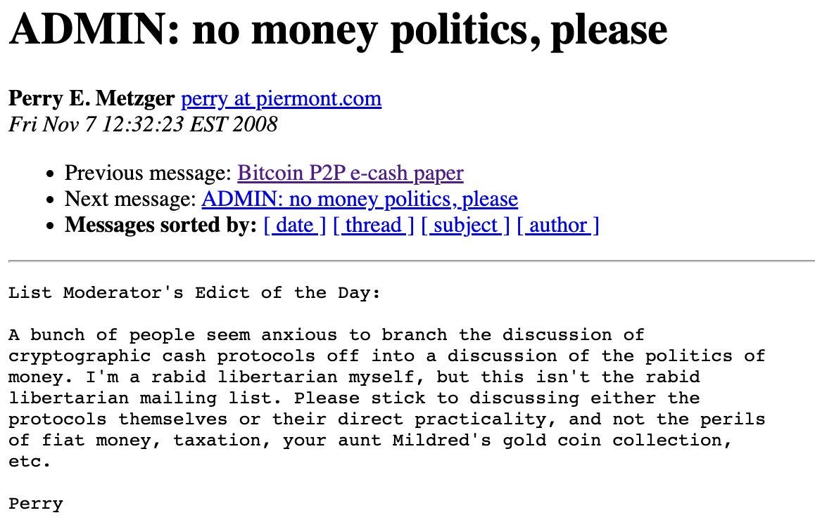 Os moderadores do famoso fórum se incomodaram com o debate sobre as discussões libertárias e implicações políticas do Bitcoin no sistema financeiro tradicional, ao ponto de pedirem para levarem as discussões para outro lugar. Um incentivo para criação do Bitcoin Talk.