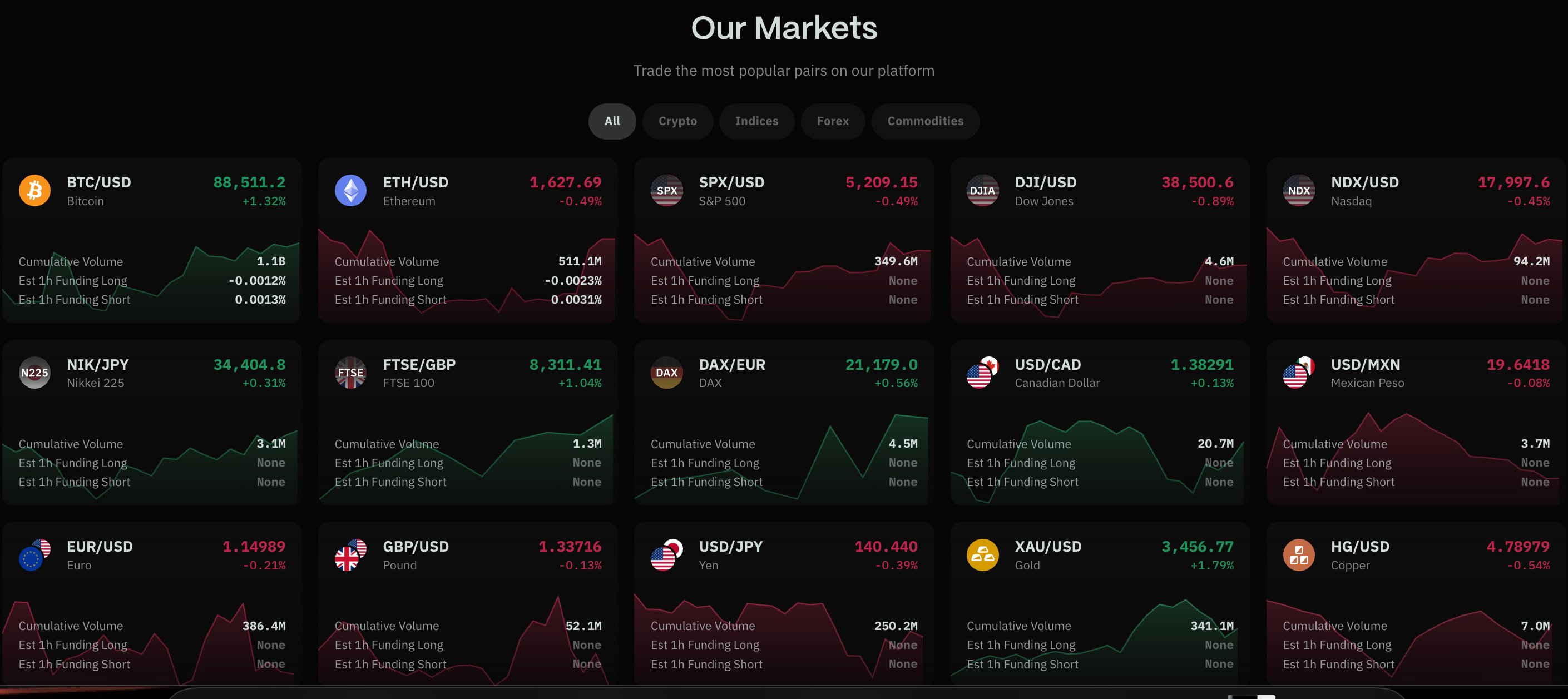 Portanto, se você procura especular em memecoins menores ou tokens muito novos, a Ostium não é o melhor lugar para isso. Seu público alvo são traders que negociam ativos tradicionais e criptos com marketcap maiores (BTC, ETH, SOL).