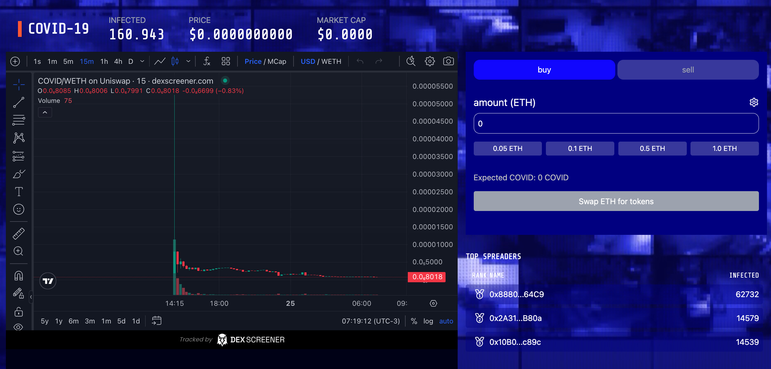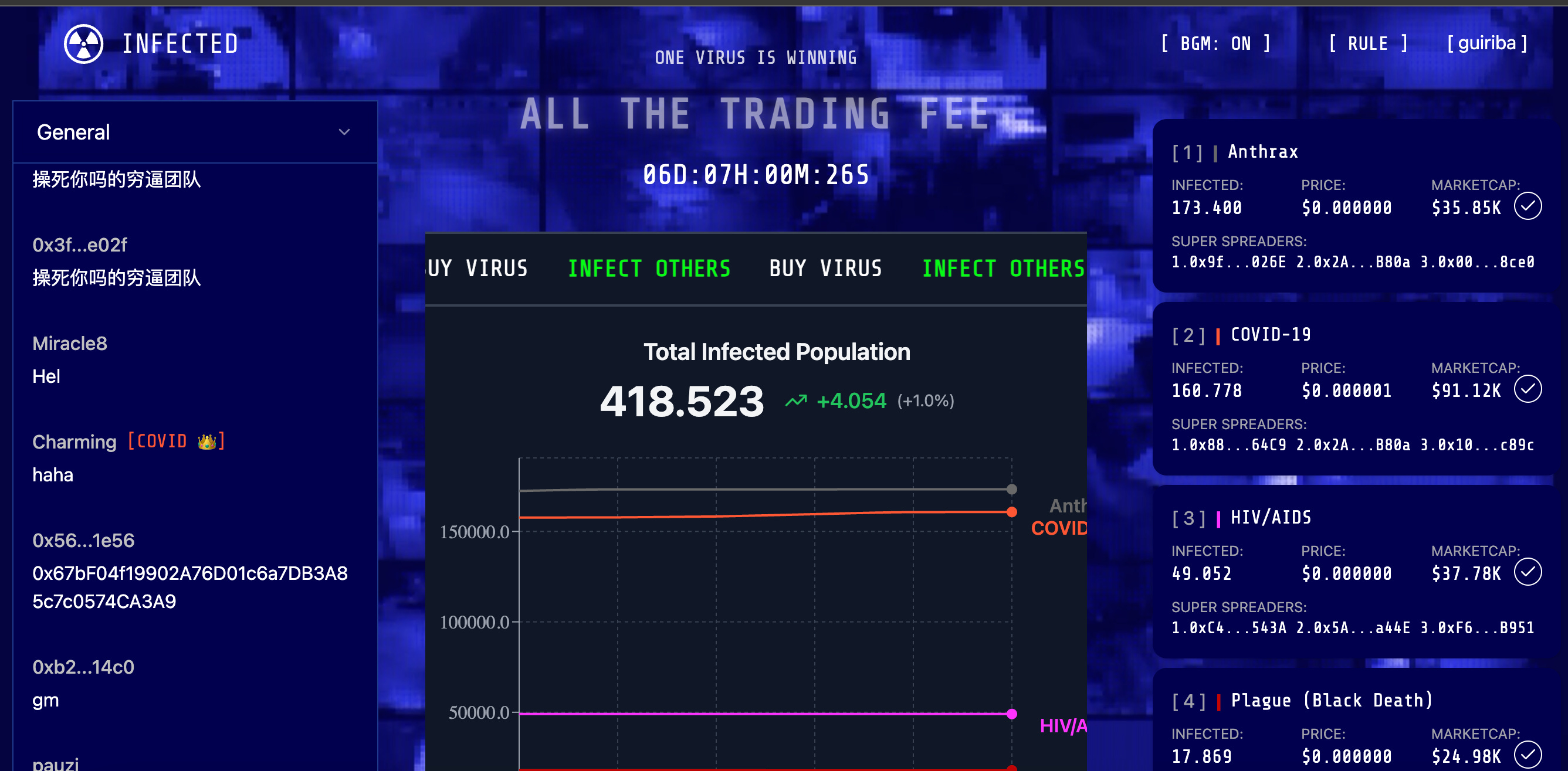 No lançamento do jogo, o token de maior sucesso era o $COVID, mas o $ANTHRAX ganhou a dianteira, e já se espalhou por mais de 173.000 endereços na Base.