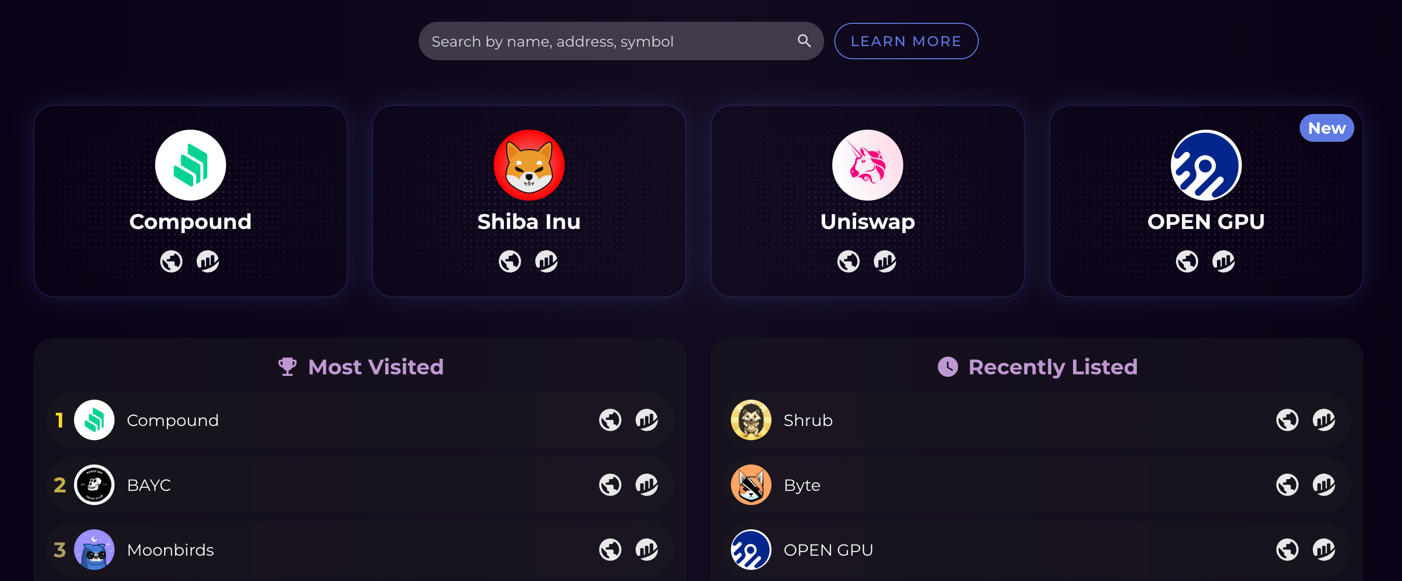Para utilizar a plataforma, basta acessar o site e colocar no campo de busca alguma moeda, seu ticker ou endereço do contrato do token para encontrá-lo.