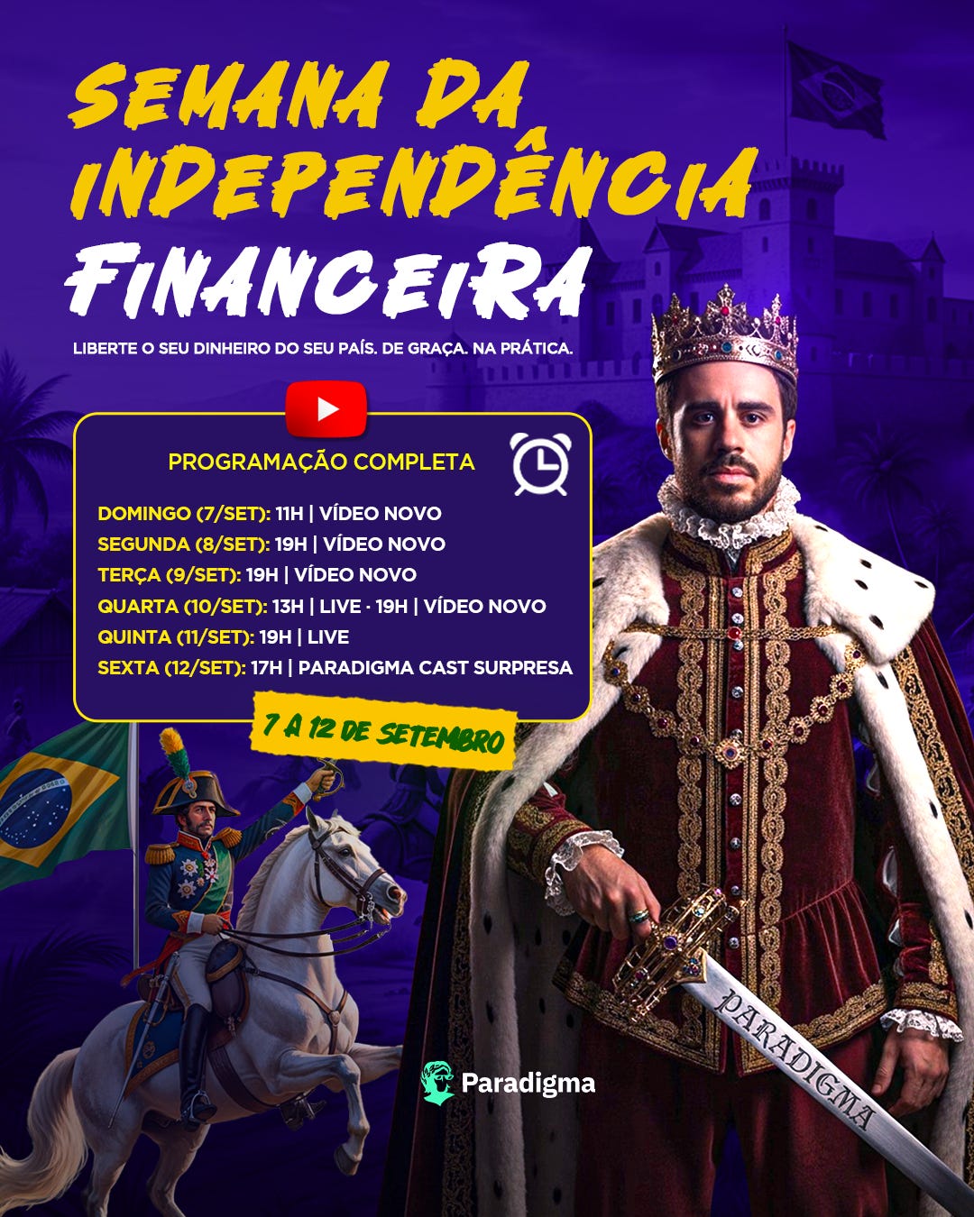 Se você também quer aprender a dar seus primeiros passos rumo à liberdade financeira, não perca as aulas da Semana da Independência que está acontecendo aqui na Paradigma.
