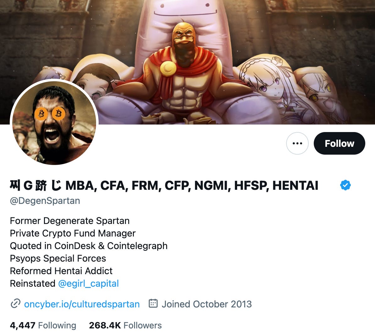 Com o prestígio conquistado no Crypto Twitter, Degen Spartan deixou de ser apenas um investidor individual para se tornar também parte de um fundo de venture capital nada convencional: a eGirl Capital.