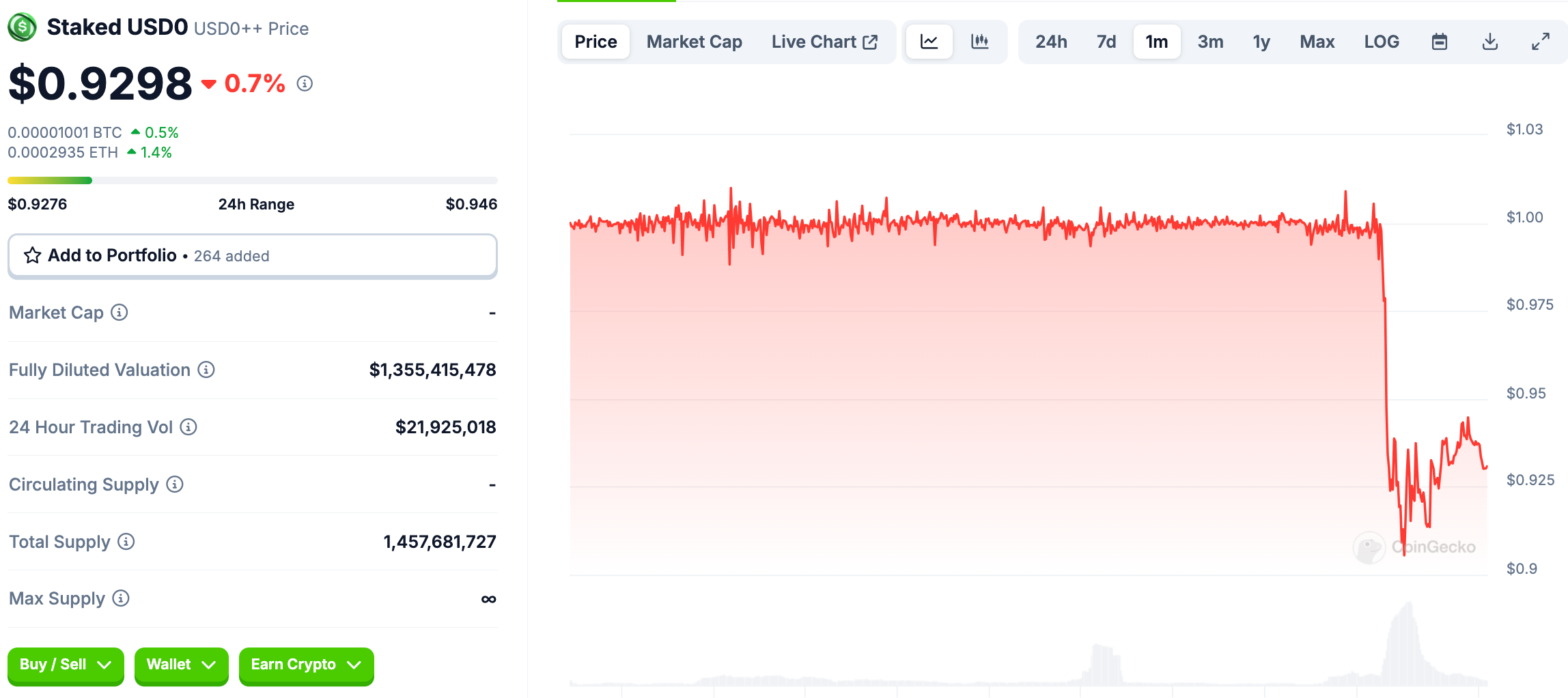 Isso levou ao mercado a começar a precificar o criptodólar travado não só como uma “versão em stake/depositada”, mas um token com desconto por estar depositado na Usual.