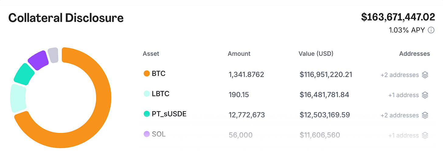 Com o Syrup, instituições podem depositar criptos (como BTC, LBTC ou até PT_sUSDE) para emprestar capital - indo além dos ativos tradicionais. Hoje, o bitcoin representa mais de 70% do dinheiro utilizado como garantia no Syrup.
