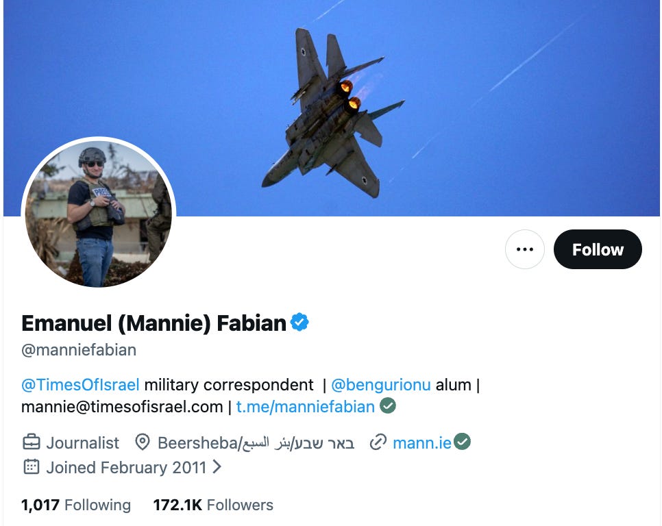 Emanuel Fabian é correspondente militar do Times of Israel. Cobre o conflito entre Israel e Irã desde o início, relatando ataques, interceptações e baixas em tempo real. No dia 10 de março de 2026, publicou uma nota que ele mesmo considerou rotineira: um míssil balístico iraniano atingiu uma área aberta perto de Beit Shemesh, nos arredores de Jerusalém. Nada de mais, sem feridos ou danos às estruturas.
