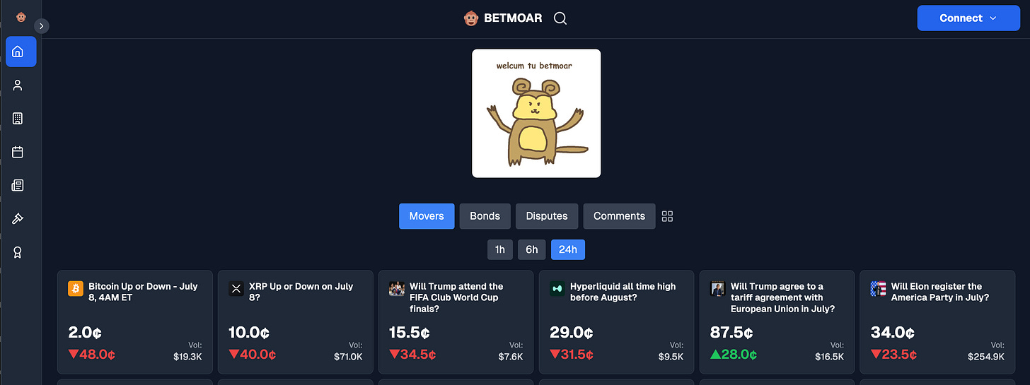 Conheça a Betmoar, uma ferramenta criada e mantida pela comunidade da Polymarket.
