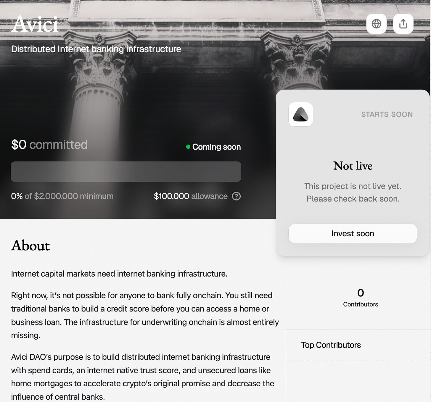 Todo o dinheiro em USDC, captado e guardado no tesouro do projeto, foi devolvido para os holders do seu token. O valor foi superior ao preço de venda da moeda, no seu ICO.